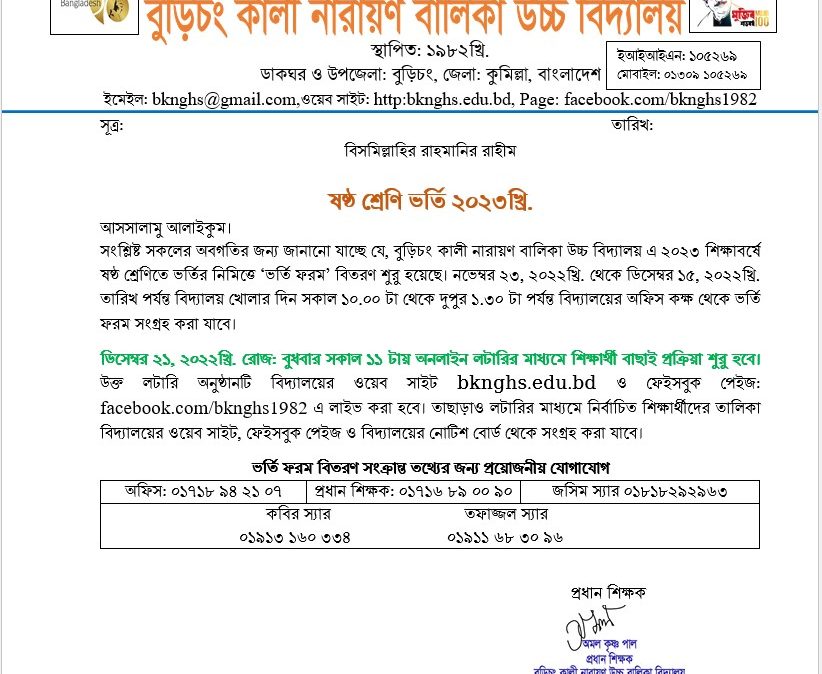 ষষ্ঠ শ্রেণির ভর্তির ফলাফল